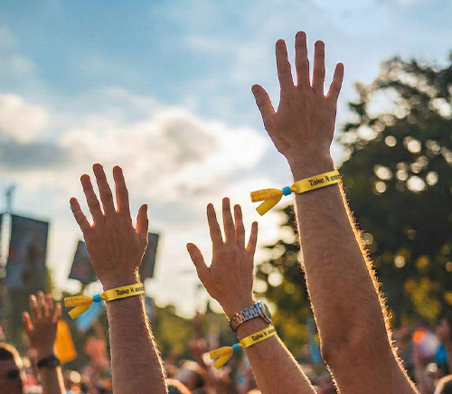 Vibrant festival-vibe merch – lanyards, bands & more.